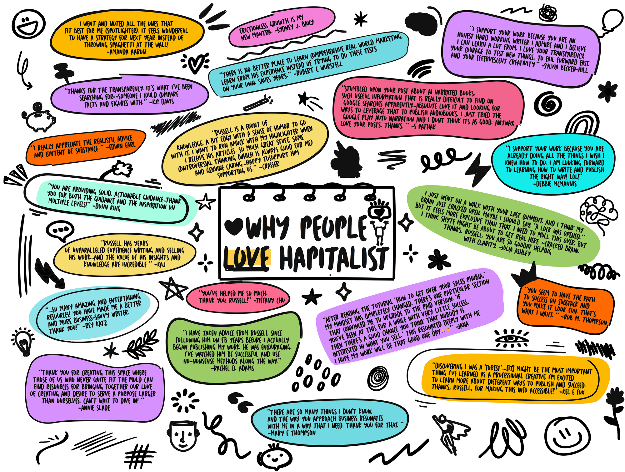 - “I support your work because you are an honest hard working writer I admire and I believe I can learn a lot from. I love your transparency, your courage to test new things, to fail forward fast, and your effervescent creativity.” -Sylvia Becker-Hill