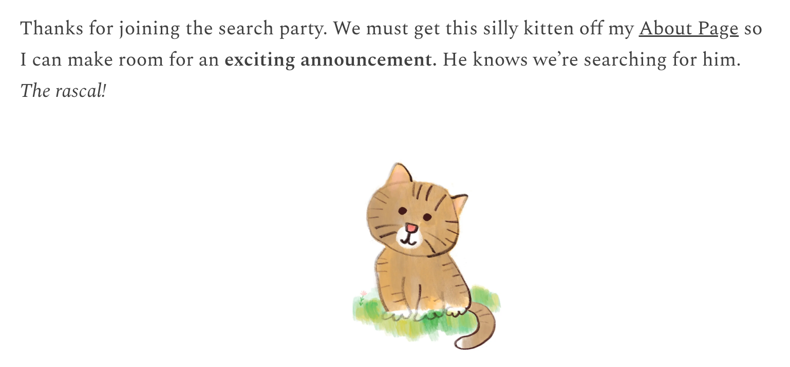 The "sneaky kitten" became a character who wandered onto my Substack and caused mischief and typos.