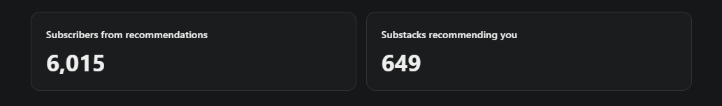 I don’t know the reason for the “slowdown” but many have posited that it’s because Substack is prioritizing followers and Notes for growth instead of the recommendations feature, which makes it markedly worse for everyone involved, at least on the publication side.