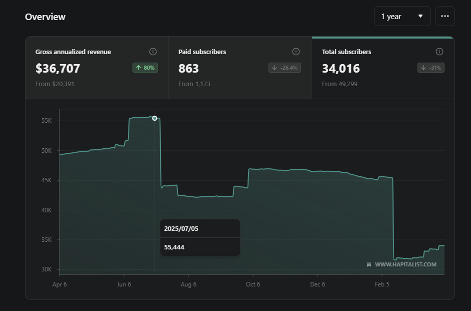 What remained after each email were people Substack showed didn’t open anything from me ever.