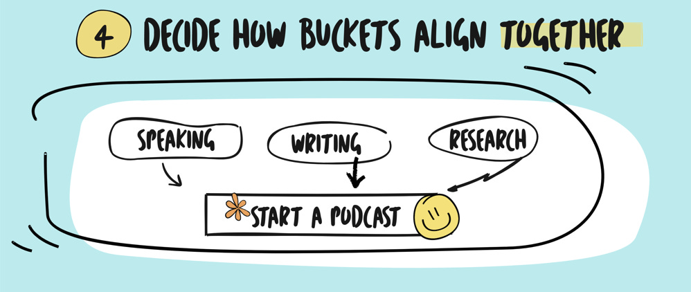 Cluster the buckets that feel like they could amplify your effort if they were done in tandem. Now look at that circled group and ask “If I kept doing these together, what would they lead to?”
