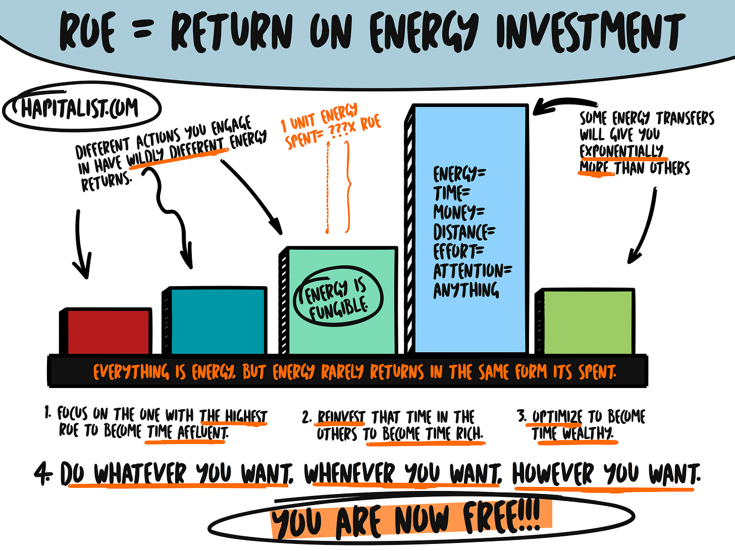 When you invest your limited time into the highest-ROE growth path, you get exponentially more in return. That return creates space in your life, which creates more money, which gives you more energy, which gives you more breathing room.