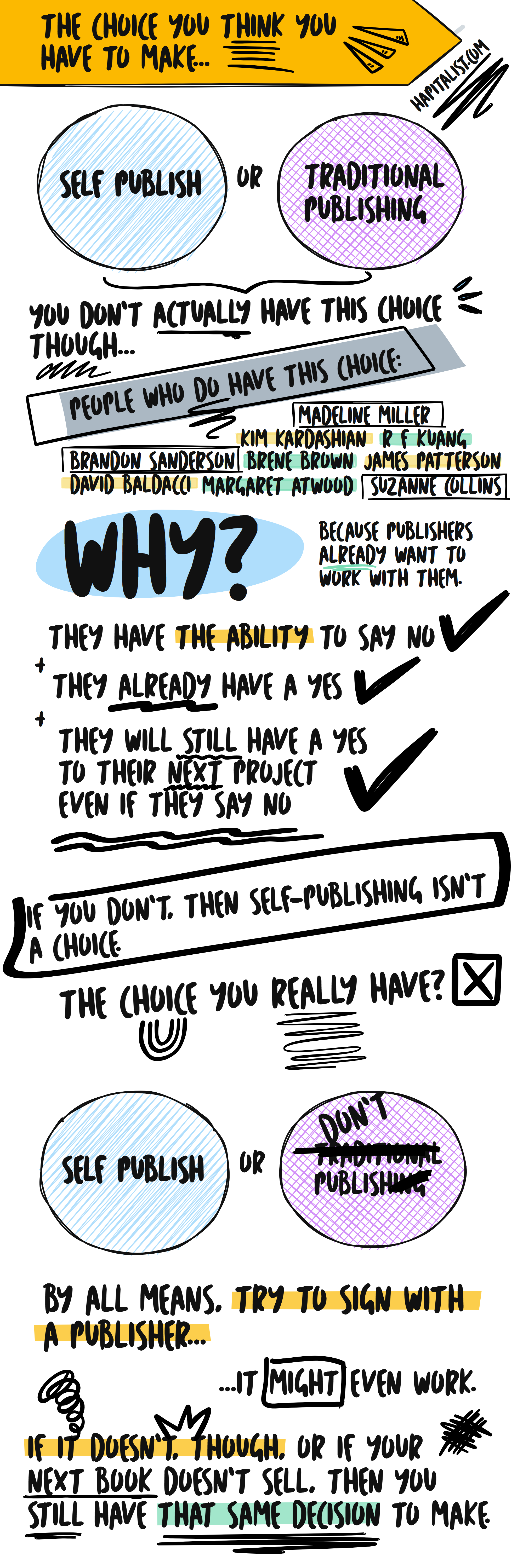 Brandon Sanderson has that choice. Marissa Meyer has a choice. N.K. Jemison has a choice. They have the choice because publishers actively want to work with them because they actively sell a lot of books.