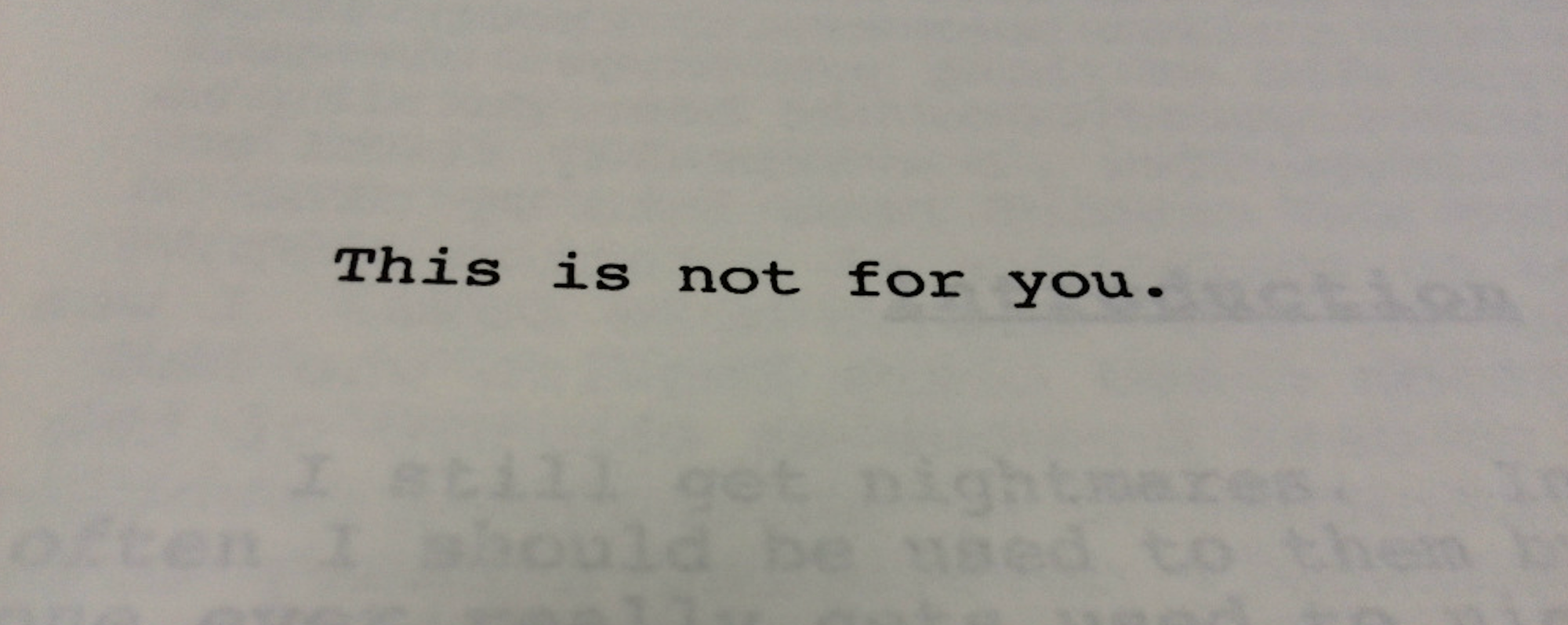 Those exact words are actually on the first page of one of my favorite books, House of Leaves — a cult hit if ever there was one. The dedication reads: THIS IS NOT FOR YOU.