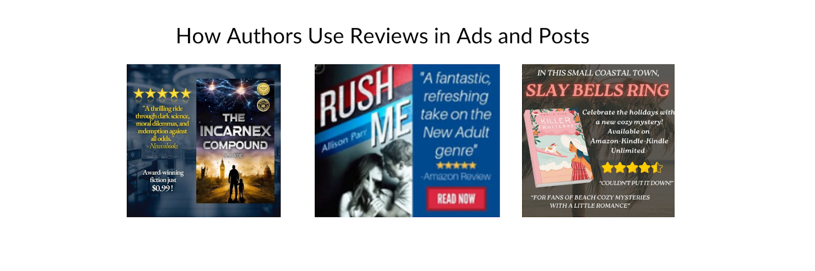 Reviews are literally testimonials, and you can use them to bring your book to life across all platforms. A short, standout quote from a review can make an excellent hook for a social media post, draw attention in a newsletter, or shine on your book’s product page. Including snippets like “a page-turner I couldn’t put down” or “a fresh take on the genre” can immediately grab a potential reader’s attention. Reviews also add substance to your marketing materials—anyone can say their book is great, but when real readers say it, the message carries a lot more weight. Leveraging positive reviews in your marketing strategy helps build momentum and keeps the buzz around your book alive long after launch day.