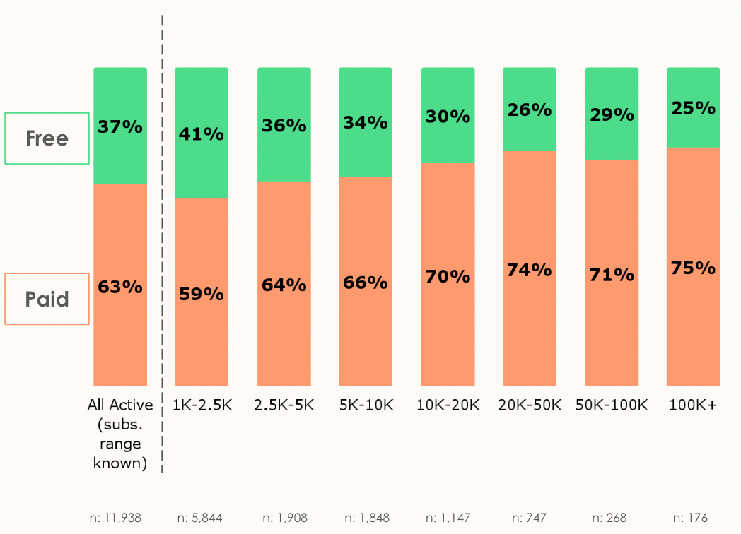 Only 36% of newsletters analyzed have a paid option, and yet paid newsletters seem to have considerably more engagement than free ones. Should more newsletters think about going paid to boost engagement, or do you think those with the most engagement tend to go paid?